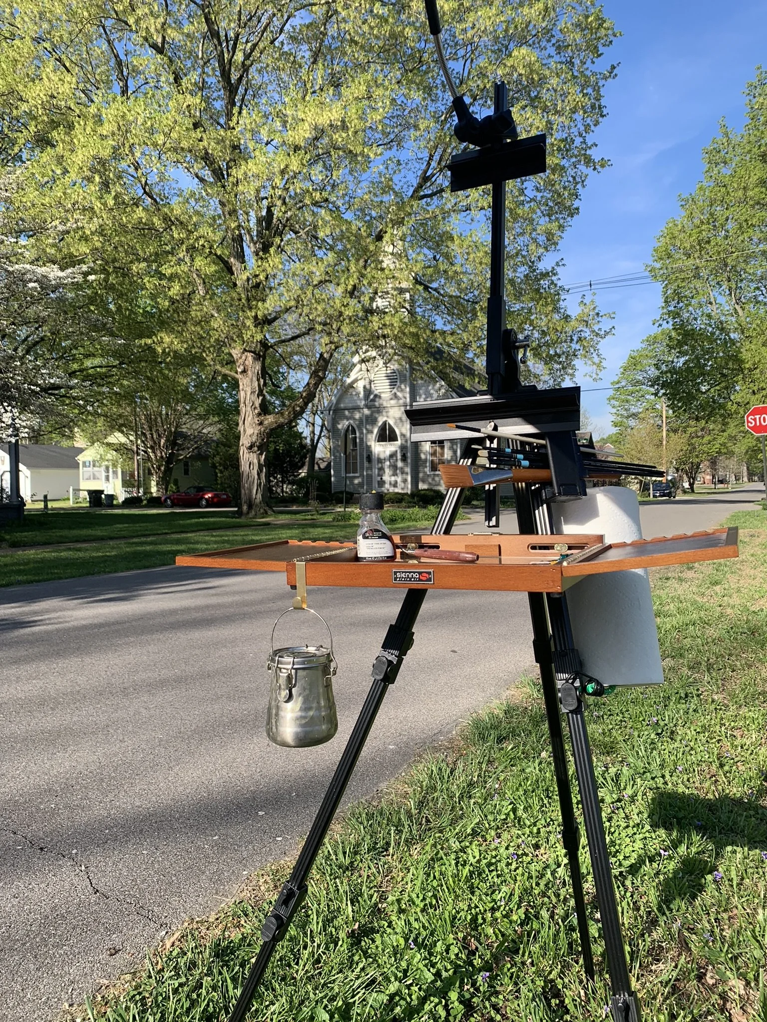 I had very little understanding of Plein until I joined. I knew you painted outside but lets say painting outside has its challenges. Bugs, weather, the lighting, choosing your spot and the foot traffic factor into your painting. After my thorough research from Youtube I equipped myself with the basic tools and signed up. The first year I just wandered around…a lot and I spent alot of time setting up my painting but it was a new experience and one that requires practice, practice, practice.